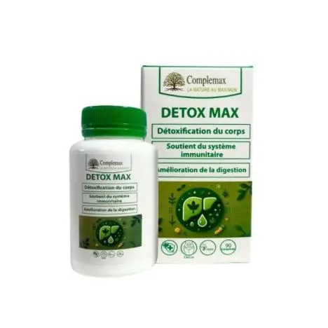 Complemax Detox Max est un complément naturel conçu pour purifier l’organisme, favoriser l’élimination des toxines et améliorer la digestion. Idéal en cure détox ou après des excès alimentaires.