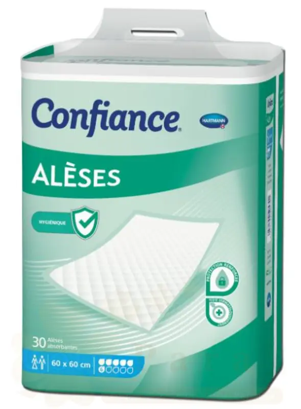 Les produits Confiance® Alèses sont constitués d’un coussin absorbant et d’un voile intraversable qui apportent une protection renforcée contre les fuites.