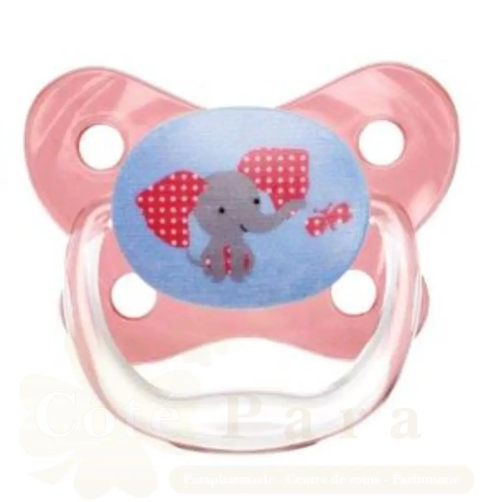 Sucette Night 6 mois+ découpe évasée : ne touche pas le nez, ne gêne pas la respiration. De grands trous d’aération préservent la peau.Forme symétrique qui se place naturellement dans la bonne position.La tétine a une forme anatomique respectueuse du développement de la mâchoire.Tétine douce comme la soie. Tétine douce comme la soie, au toucher moelleux – douceur à nulle autre pareille.Le latex est ultra souple et agréable pour les bébés. Résistant aux mordillements.