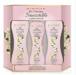 BioSilk Silk Therapy Irresistible est une explosion de pétales de jasmin succulents au parfum d’épices miellées, touché d’une essence sensuelle féminine et confiante. L’âme de ce parfum a été inspirée par vous l’esprit irrésistiblement rayonnant. La collection Irresistible Silk Therapy éveillera votre beauté à l’intérieur et à l’extérieur tout en fournissant à vos cheveux les ingrédients essentiels pour aider à reconstituer l’humidité dans tous les types de cheveux et textures.